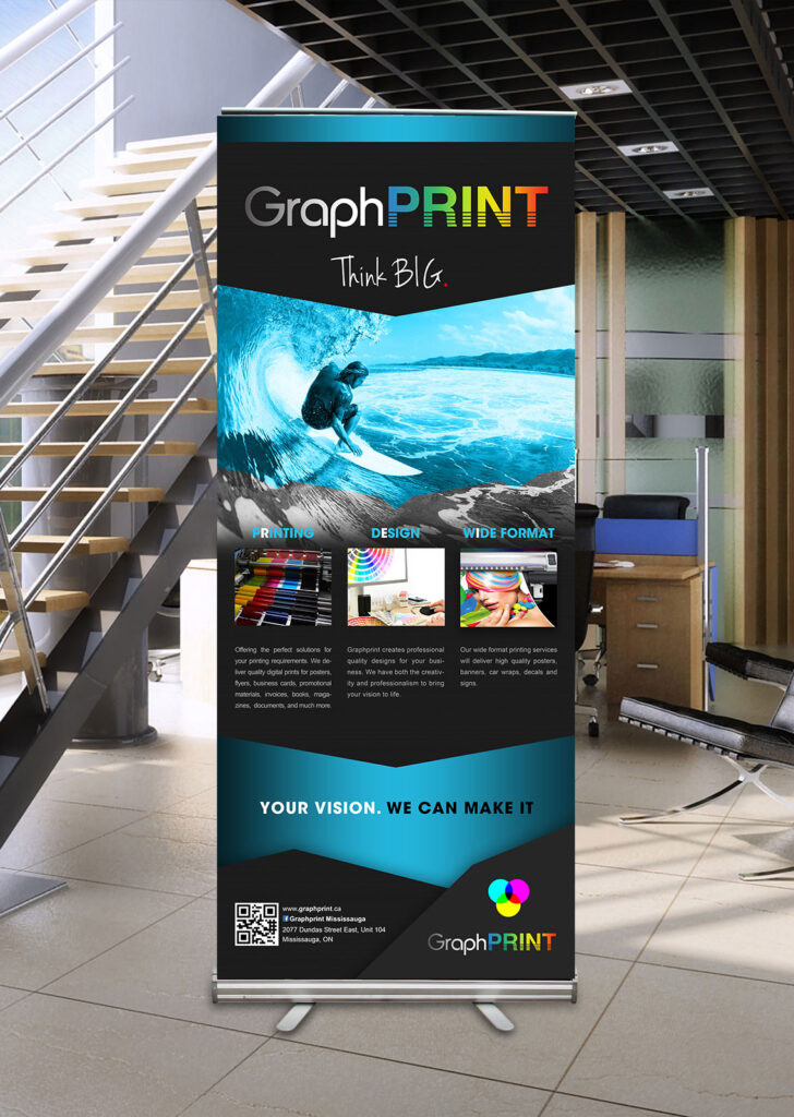 Retractable/ Portable Banner Stands can be used for long term advertising in your business and a great return on investment. They are easily rolled up, lightweight, when transported to a tradeshow, special event or business meeting. Whether you are displaying at a tradeshow or promoting at an event or meeting, Speedpro can help with in-house design experience and produce a premium banner stand to meet your needs! Need more than one? Group multiple Banner Stands together to make an even bigger impact!